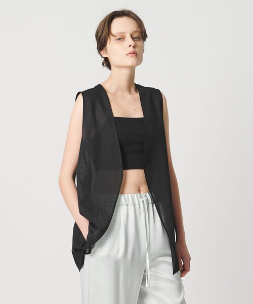 春夏のレイヤードスタイルに。透け感が軽やかなシアーベスト ■デザイン 春夏のスタイリングアクセントに映える、軽やかなシアーベスト。 シャープなカッティングのノーカラーで、留め具のないシンプルなミニマルデザインが魅力です。 ■素材 なめらかな表面に、ドライタッチな風合いが特徴のトロピカル素材を使用。 軽やかでありながらクラシカルな雰囲気も併せ持っています。 ■コーディネート 縦長のシルエットを強調させるベストは、ワイドパンツやカーブデニムと好相性。 Tシャツやキャミソールとの涼やかなレイヤードスタイルから、ジャケットのインにさりげなく重ねるのもおすすめ。 シンプルなコーディネートにアクセントをプラスしてくれる一着です。 ============================ 裏地:なし 透け感:ややあり 伸縮:なし 光沢感:なし ケア方法:ドライクリーニング ============================ 【注意事項】 ※商品に「取り扱い上の注意書き」、「洗濯表示」がございます場合は、使用前に必ずご確認ください。 ※商品画像は、光の当たり具合やパソコンなどの閲覧環境により、実際の色味と異なって見える場合がございます。あらかじめご了承ください。 ※商品の色味の目安は、商品単体の画像をご参照ください。 ※画像の商品はサンプルです。実際の商品と色味、仕様、加工、サイズ、素材等が若干異なる場合がございます。 店舗へお問い合わせの際は、全国のUNITED ARROWS各店舗まで下記の品名/品番をお申し付けください。 品名:AM W/P SHEER VEST 品番:87222000002