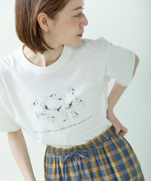 ●●● WEB LIMITED ITEM ●●● 散歩から帰りたいのに、うちの子はどこに行っちゃったの? という飼い主の声も知らず、眠そうだったり、伸びをしてみたり、フリルのお洋服でおめかしして佇んだりと、思い思いに過ごすビーグルたち。マイペースなわが子を見つけ出すには一苦労しそう。 鉛筆書きしたようなやわらかなタッチがポイント。ボディはUnited Athleの6.2オンスのコットン100%のTシャツを使用。縫い上がった製品を一度洗いにかける製品水洗い加工を加えているので、味のある風合いに仕上がっています。ご家庭での洗濯後に縮みが起きにくいのも嬉しい。 ※一部店舗に入荷する場合もございます。 -------------------- 透け感:なし 裏地:なし 伸縮性:ややあり 光沢感:なし ポケット:なし -------------------- 【素材の特性・お取り扱いの注意】 ・取り扱いの注意については取り扱い表示をよくご確認の上、着用をお願い致します。 ・着用や洗濯を繰り返すことにより、プリントのひび割れや剥離が生じる事があります。 ・プリント部分への過度な摩擦はお避け下さい。一度汚れが付くと取れにくいので、汚さない様にして下さい。 ・必ず裏返して洗って下さい。 ※撮影画像は、光の当たり具合やモニターの環境により色味が違って見える場合があります。あらかじめご了承下さい。 ※画像はサンプルを着用しています。お届けする実際の商品と仕様、加工、サイズが若干異なる場合があります。