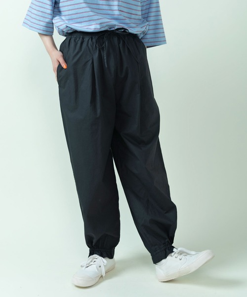 気温の高い日にもさらっと履きやすい、軽やかなイージーパンツ。 マドラスチェック(イエロー)は洗いざらしたようなナチュラルな風合いが特徴のオーガニックコットン素材。表情のあるムラ糸を織り込むことで適度にカジュアルな印象に。ピッチの細かいギンガムチェック(ネイビー)は、通常の糸よりも滑らかな強度のあるコットン糸で織り上げ、目が詰まりながらもしなやか。どこか品のある雰囲気です。シックな無地ブラックはハリのあるタイプライター生地を使用。甘さのある裾リボンデザインも取り入れやすく、ボーダーなどの柄物トップスとも相性抜群。 ウエストは一周ゴム仕様で、快適な履き心地が嬉しい。中にヒモが通っているので小柄な方も挑戦しやすいアイテムです。裾のリボンで絞り具合の調整が可能。ぎゅっと絞ってメリハリのあるボリューム感を楽しんだり、あえて結ばずにラフに履いても。着映えする立体的なデザインで、シンプルなブラウスやカットソーと合わせてもさまになります。同素材でギャザースカート(5001SK003261)もご用意しております。 ※イエローは後日販売開始致します。 -------------------- 透け感:なし 裏地:なし 伸縮性:なし 光沢感:なし ポケット:あり -------------------- 【素材の特性・お取り扱いの注意】 ・取り扱いの注意については取り扱い表示をよくご確認の上、着用をお願い致します。 ・(ブラック)汗や雨等で濡れた場合、摩擦などにより色落ちし、他の衣料に移染することがありますのでご注意下さい。 ※撮影画像は、光の当たり具合やモニターの環境により色味が違って見える場合があります。あらかじめご了承下さい。 ※ネイビー、ブラックの画像はサンプルを着用しています。お届けする実際の商品と仕様、加工、サイズが若干異なる場合があります。