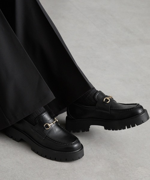 -【cussil】New Item Release - ◆素材◆ キメが細かくマットな質感の合成皮革を採用しました。 柔らかい合成皮革素材は、足に馴染みやすいのが特徴。 ◆ディテール/シルエット◆ クラシカルなUチップデザインをベースに、重厚感とラグジュアリーな要素を掛け合わせたビットローファー。 端正で上品なフォルムに、現代的なボリューム感をプラスした一足です。 フロントには存在感のあるゴールドビット(メタルバックル)を配置。 無骨なハイソールとのコントラストが際立ち、足元に洗練されたアクセントを加えます。 ソールには厚みがあり、安定感とトレンド感を両立。 インソールは約1.5cm、ソールは約4.5cmとスタイルアップも叶えてくれます。 ステッチワークにより耐久性を高めつつ、ディテールとしてもさりげないポイントになっています。 シンプルなスタイリングに取り入れるだけで、コーディネート全体を引き締めてくれる存在感のある一足。 カジュアルからきれいめ、モードスタイルまで幅広く活躍します。 ◆カラーパターン/サイズ◆ コーディネートになじみやすいブラックの1色を厳選。どんなスタイリングに合わせやすく定番のカラーです。 サイズの展開(S~L)も豊富で、女性の方もメンズライクに着こなせるユニセックスアイテムです。 【Attention】 ※本商品はローファー特有の設計に加え、通常よりやや小さめのサイズ感で仕上がっております。 個体差もございますので、サイズ選びの際はゆとりを持ったご検討をおすすめいたします。 ◆プライス・コーディネート◆ 素材やルックスだけでなく、合わせやすさにもしっかりとこだわり、実現したcussilだけの特別な1足。 スラックスやワイドパンツはもちろん、デニムやカーゴパンツとの相性も良いマストな1足です。 ◆推奨着用サイズ◆ サイズについて(推奨サイズ) ・S:24.0cm〜24.5cm ・M:25.0cm〜25.5cm ・L:26.0cm〜26.5cm ※本商品はローファー特有の設計に加え、通常よりやや小さめのサイズ感で仕上がっております。 個体差もございますので、サイズ選びの際はゆとりを持ったご検討をおすすめいたします。 ◆サイズスペック◆ インソール:約1.5cm ソール:約4.5cm ※実際の商品とサイズが若干異なる場合がございます。 ※日光や照明等に長時間当たると色褪せしますので、ご注意下さい。 ※保管の際は窓際等を避けてください。 ※撮影画像は、光の当たり具合で色味が多少異なって見える場合があります。商品の色味は、スタジオでの詳細画像をご参照ください。 ※末永く愛用頂く為に、アテンションタグ・洗濯ネームを必ずご確認の上、着用又はお取り扱い下さい。 -cussil/クシル- 自分らしさを知らない、また知っている人でも 新しい自分になれる・発見できるスタイルを提案。⠀ 内に秘めた輝きを持つCuS " covellite " のように⠀ 本来のあなたを見出せる存在に。