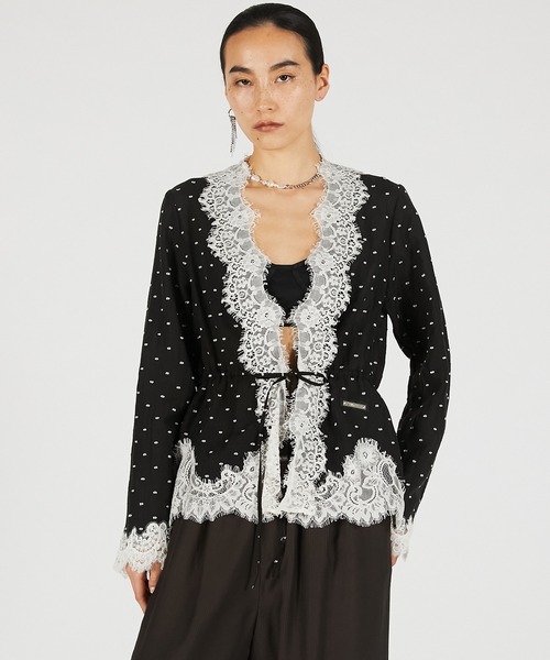 ーStyleーウエストのリボンをギュッと絞って女性らしく着れる一着。 羽織としても重宝するアイテム。 ウエストリボンの上にあるボタンを留めるとVネックのプルオーバー風に一枚ですっきりと着るのもおすすめ。 かわいくなりすぎないよう辛口アイテムとあわせる着こなしが◎。 ーFabricー ややシアー感のあるドットジャガード素材に3種類のレースを使用。 テンセル素材で吸湿性に優れており涼しく着用できるアイテム。 ※注意点※ 繊細な素材の為、引っ掛け等によるほつれが起こる可能性がございます。 取り扱いには十分ご注意ください。 【PRANKPROJECT/プランクプロジェクト】 常識に縛られない洗練された大人の女性に向けて ”意外性”と”品の良さ”をMIXさせた 上質なNEWMODEBRAND ・商品のお気に入り登録再入荷、残り1点などの通知を受け取ることが出来ます。 ・ブランドのお気に入り登録新商品や再入荷、ショップのおすすめトピックスなど、いち早くブランドのお得な情報を受け取ることができます。