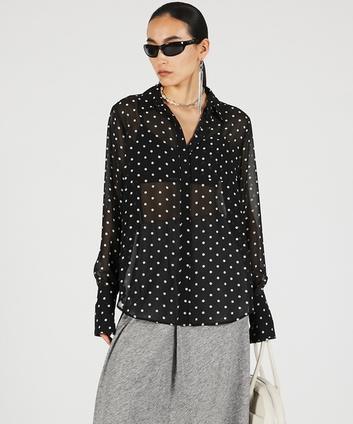 ーStyleー透け感のある柔らかな素材で仕立てたシアーシャツ。 軽量で肌離れが良い生地を使用し、春夏シーズンでもストレスなく着用できるアイテム。 タイトすぎずオーバーすぎないジャストなサイズ感で、タックパンツなどのマニッシュなスタイルが◎。 台衿にあしらわれたオリジナルのメタルモチーフがさりげないポイントに。 着用するだけでぐっとモードな印象に。 ーFabricー WHT・PNK→とろみとシャリ感のあるレーヨンシアー素材を使用。 柔らかな肌当たりで着心地のよい仕上がりに◎。 BLK→ドットプリントが施されたポリエステルのシフォンを使用。 ※注意点※繊細な素材の為、引っ掛け等によるほつれが起こる可能性がございます。 取り扱いには十分ご注意ください。 【PRANKPROJECT/プランクプロジェクト】 常識に縛られない洗練された大人の女性に向けて ”意外性”と”品の良さ”をMIXさせた 上質なNEWMODEBRAND ・商品のお気に入り登録再入荷、残り1点などの通知を受け取ることが出来ます。 ・ブランドのお気に入り登録新商品や再入荷、ショップのおすすめトピックスなど、いち早くブランドのお得な情報を受け取ることができます。
