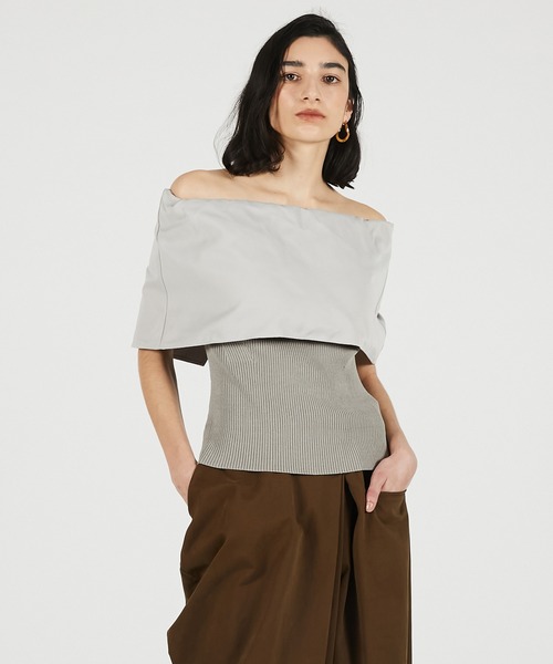 ーStyleーしっかりとしたハリのあるモードな素材とニットのコンビネーションがポイントの一着。 ベアトップ、ワンショルダートップ、オフショルダートップ、とマルチにスタイリング可能。 ーFabricー 清涼感があり、綺麗めなレーヨンナイロンに、さらにハリ感を出すためにフィラメントの透明糸をプレーティング。 ハイゲージの見た目に反し、あえて重厚なハリ感を持たせるオリジナル設計の編み地。 【PRANKPROJECT/プランクプロジェクト】 常識に縛られない洗練された大人の女性に向けて ”意外性”と”品の良さ”をMIXさせた 上質なNEWMODEBRAND ・商品のお気に入り登録再入荷、残り1点などの通知を受け取ることが出来ます。 ・ブランドのお気に入り登録新商品や再入荷、ショップのおすすめトピックスなど、いち早くブランドのお得な情報を受け取ることができます。