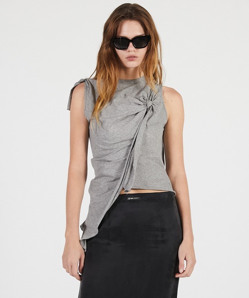 ーStyleー片側に寄せた大胆なノット(結び目)デザインが、構築的なシルエットを生み出すデザイントップス。 アシンメトリーな裾のラインが、ボトムに合わせるだけでモードな印象を格上げ。 ーFabricー カジュアルになりすぎない、程よい肉感と落ち感のある綿ジャージー素材を使用。 【PRANKPROJECT/プランクプロジェクト】 常識に縛られない洗練された大人の女性に向けて ”意外性”と”品の良さ”をMIXさせた 上質なNEWMODEBRAND ・商品のお気に入り登録再入荷、残り1点などの通知を受け取ることが出来ます。 ・ブランドのお気に入り登録新商品や再入荷、ショップのおすすめトピックスなど、いち早くブランドのお得な情報を受け取ることができます。