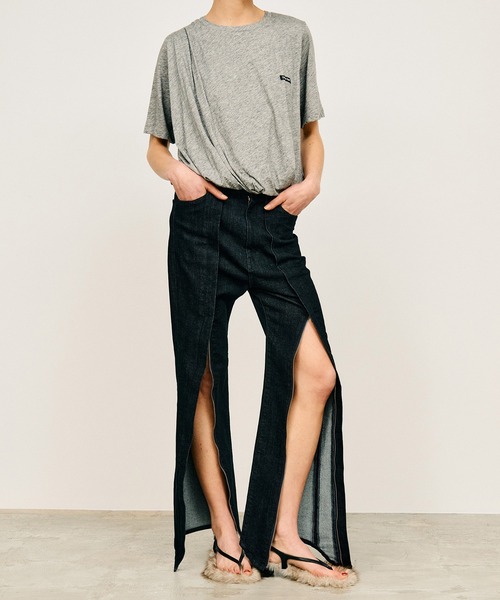 ーStyleー新鮮な細身のシルエットが大人っぽい印象のデニムパンツ。 フロントに大胆にファスナーを施し、好きな長さのスリットとして開けることが可能。 前丈を長く、後丈を短くすることにより、引きずることなく着用できるアイテム。 ーFabricー BRN→ブラックデニムにムラになるよう洗いをかけ、ブラウンのオーバーダイをのせた。 また、スプレー加工によりブラスト感を表現。 BLU→インディゴデニムにムラになるよう洗いをかけ、前身頃全体にブラストを施した。 NVY→リジット見えするよう、弱ワンウォッシュで仕上げた。 デニム生地による伸縮性を持たせた生地。 通常よりもやや薄手の10オンスを使用し、ゴワ付きが少なく、春夏に向いた生地。 主にポリウレタンやスパンデックスが混紡され、動きやすさと快適さを兼ね備えた素材。 【Set Up】 Name:Asymmetrical Denim Tunic Product Number:31261315402 【PRANKPROJECT/プランクプロジェクト】 常識に縛られない洗練された大人の女性に向けて ”意外性”と”品の良さ”をMIXさせた 上質なNEWMODEBRAND ・商品のお気に入り登録再入荷、残り1点などの通知を受け取ることが出来ます。 ・ブランドのお気に入り登録新商品や再入荷、ショップのおすすめトピックスなど、いち早くブランドのお得な情報を受け取ることができます。