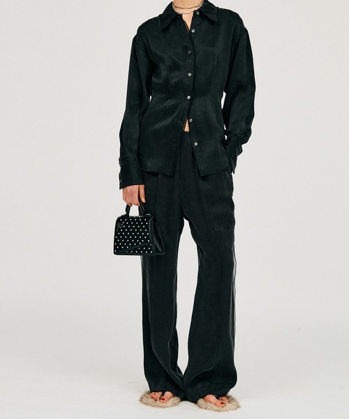 ーStyleーサテンのフレアパンツ。 細みのフレアシルエットで、脚のラインをきれいに見せてくれる。 フロントピンタックのきれいめのルックスにウエストゴムのイージーな仕様がポイント。 スマートにもカジュアルにも着こなせるアイテム。 同じ生地のサテンタンクチュニックとのセットアップ、サテンシンチドウエストシャツとスリーピースで着用もおすすめ。 ーFabricー 肌触りの良いとろみのあるサテンを使用。 体のラインを拾いにくい程よい肉感。 両サイドの透け感のあるシフォンのトリミングがアクセント。 【Same material item】 Name:Satin Tank Tunic Product Number:31261316107【Same material item】 Name:Satin Cinched Waist Shirt Product Number:31261316111 【PRANKPROJECT/プランクプロジェクト】 常識に縛られない洗練された大人の女性に向けて ”意外性”と”品の良さ”をMIXさせた 上質なNEWMODEBRAND ・商品のお気に入り登録再入荷、残り1点などの通知を受け取ることが出来ます。 ・ブランドのお気に入り登録新商品や再入荷、ショップのおすすめトピックスなど、いち早くブランドのお得な情報を受け取ることができます。
