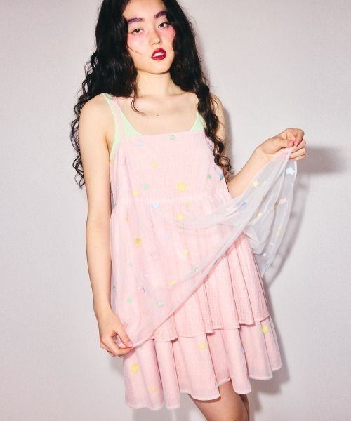 チェック生地の上からパステルカラーの星柄のチュールを重ねたキャミソールワンピース。 バックシャンディティールを取り入れ女性らしいアクセントをプラスしました。 スカート部分は裾広がりのティアードシルエットにすることで華やかな印象に。 肩紐はアジャスター付きでお好みのバランスに調整可能。 Tシャツやデニムを組み合わせてカジュアルダウンさせた着こなしはもちろん、 キャミソールやコンパクトサイズのトップスを組み合わせて サンドレス風に着こなしていただくこともオススメ。 夏らしい着こなしにぴったりです。 ・ ・・・・・・・・・・・・・・・・・ ・透け感:なし ・伸縮性:なし ・生地の厚さ:薄い ・裏地:あり ・ポケット:なし ・ ・・・・・・・・・・・・・・・・・ ・ライトピンク、ライトイエロー、ライトブルーの3色展開 【サイズ展開】 ・FREE(フリーサイズ) #ガーリー#Aライン#星#ミニワンピ#チュール#キャンスト#キャンスパ#CND ●Candy Stripper/キャンディストリッパー● -BRAND CONCEPT- NO RULE, NO GENRE, NO AGE 年齢や性別にとらわれず、自由に自分を表現出来る服 【お買い物をもっとお楽しみ頂くために】 ▼商品のお気に入り登録▼ 完売カラーの再入荷通知や、ラスト1点通知、 プライスダウンしたセール通知も受け取れる♪ ▼ブランドのお気に入り登録▼ 新作や再入荷等、いち早くブランドのお得な情報が受け取れる♪