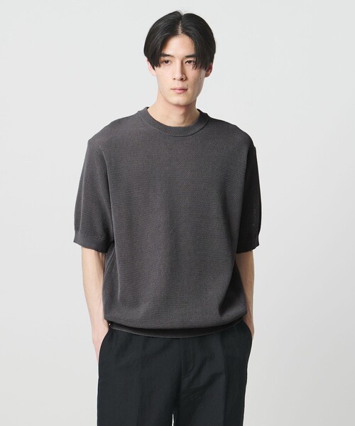 軽さと清涼感をまとう、大人の品を添えるバーズアイニット ■デザイン <UNITED ARROWS>定番のドライでシャリ感のある素材を生かしたクルーネックの半袖ニットです。 Tシャツではカジュアルになりすぎるシーンでも上品に着用でき、ニットならではの大人らしい雰囲気を纏える一着です。 風が抜けるメッシュ構造によって、軽さと清涼感のある快適な着心地を感じられます。 ■素材 ギマ加工を施した糸を使用しており、軽さと光沢感があり、触れた瞬間からドライな質感が特徴です。 バーズアイ柄の編地はメッシュ調で、風が抜ける構造により清涼感のある快適な着用感が生まれます。 日本製ならではの丁寧な作りが魅力です。 ドイツ製の古い編み機で編むことで、度目が詰まり、柄の立体感がより際立っています。 襟付けの技術も秀逸で、襟元のカーブが美しく仕上がっています。 ■コーディネート Tシャツではラフになり過ぎる場面で上品さをプラスでき、ジャケットや軽い羽織りのインナーとしても活躍します。 清涼感のあるタッチと軽い着用感により、春夏の大人のカジュアルスタイルに自然に馴染む万能な一着です。 ============================ 裏地:なし 透け感:なし 光沢感:なし ============================ 【注意事項】 ※商品に「取り扱い上の注意書き」、「洗濯表示」がございます場合は、使用前に必ずご確認ください。 ※商品画像は、光の当たり具合やパソコンなどの閲覧環境により、実際の色味と異なって見える場合がございます。あらかじめご了承ください。 ※商品の色味の目安は、商品単体の画像をご参照ください。 店舗へお問い合わせの際は、全国のUNITED ARROWS各店舗まで下記の品名/品番をお申し付けください。 品名:〇UA SRLY/CARN B/EYE C/N 品番:11182940001