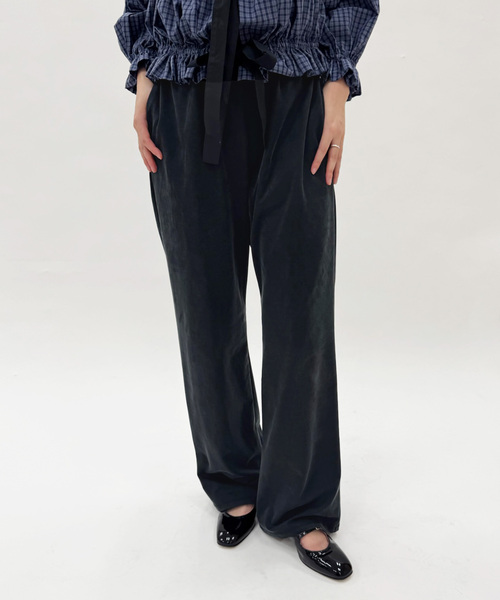 【Pre-Spring】 EDIT. FOR LULU フィブリル加工のジャージ素材を使用したパンツ。 ほんのりセミフレアなシルエット。 太すぎず、細すぎず、BASICなサイズ感です。 アルカリ処理、タンブル、起毛など様々な工程得て、この独特のフィブリル加工を実現しています。 生地には程よい厚みがあり、キックバックが強いのも、体のラインをひろいすぎないポイントです。 キュプラならではの滑らかさと上品な落ち感が特徴。 シーズン問わずに着ていただける生地感なのもおすすめポイントです。 きちんと感があるのに、抜け感もあるミニマルなパンツです。 ※取り扱いについては、商品についている品質表示でご確認ください。 ※照明の関係により、実際よりも色味が違って見える場合があります。 またパソコン・スマートフォンなどの環境により、若干製品と画像のカラーが異なる場合もございます。 ※商品の色味は、商品アップ画像をご参照ください。 モデルサイズ:身長:163cm 着用サイズ:36 本体:手洗い可能
