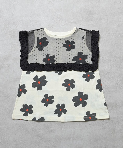 チュール×フリルで華やぐ 1枚で着映えするノースリーブトップス ■デザイン やわらかなチュール素材を重ねたデザインに、カラー配色のフリルをあしらったノースリーブカットソーです。 透け感のあるチュールとポップな総柄やボーダーを組み合わせ、ガーリーさと遊び心を両立した1枚に仕上げました。 肩から胸元にかけてのフリルディテールが、動きのある華やかな印象をプラスしてくれます。 ■スタイリング シンプルなデニムやショートパンツと合わせるだけで、トップスが主役のコーデが完成します。 スカートと合わせてガーリーにまとめるのはもちろん、カジュアルなボトムと合わせたミックススタイルもおすすめです。 1枚で存在感があるので、夏のおでかけコーデにもぴったりです。 ■生地感 身頃はやわらかなカットソー素材で、肌ざわりの良い着心地です。 チュール部分は軽やかで通気性があり、見た目にも涼しげな印象を与えてくれます。 軽くて動きやすく、暑い季節にも快適に着用していただけます。 ++++++++++++++++++++++++ 透け感:少しあり 伸縮:あり 厚み:普通 ++++++++++++++++++++++++ ※ネームタグ付き ※モデルが着用している画像は、照明や日光などの撮影時の環境により実物と異なる色味になる場合がございます。 商品単体の平置き画像を実物に近いお色味になるよう努めておりますので、お色味のご確認は平置き画像をご参照くださいませ。 ※お使いのモニター環境によっても実物のお色味と異なって見える場合がございます。予めご理解の程よろしくお願いいたします。 ハートマークをポチッ! 気になる商品はお気に入り登録をお忘れなく! 商品のお気に入り登録をすると... [再入荷][残り1点][セール情報]を受け取れます。 MARKEY'Sをお気に入り登録すると... [新商品][再入荷]の情報をいち早く受け取れます。