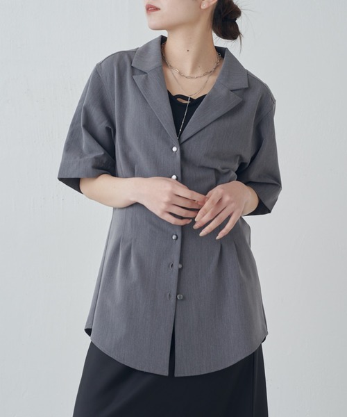 半袖ウエストタックジャケットシャツ 【ポイント】 ・ウエストが程よくシェイプされた構築的なシルエットで、スタイルアップ効果を期待できるトップスです。 ・体のラインを綺麗に見せるデザインシャツ。女性らしい上品なシルエットに。 ・胸周りにもタックを施し、高めの切り替え位置でバストアップ見えし、 ・ウエストがカーブかかったデザインで美シルエットなジャケットのような開襟シャツ。 ・柔らかくもハリ感のある生地を採用したことでフォーマルチックな印象に。 ・サマージャケットスタイルや、レイヤードスタイルなど、様々な夏コーデに合わせられます。 【素材】 ・耐久性・速乾性・シワになりにくさに優れるポリエステルと、 滑らかな肌触りを持つコットンの両方の長所を併せ持った生地のため、キレイめにもカジュアルにも相性抜群です。 【スタイリング】 ・一枚でコーデが即完成するアイテムなので、シンプルなボトムと合わせるだけでOK◎ ・また、シンプルだからこそ、アクセサリーなどの小物合わせも合わせやすい1枚。 ********************** 透け感:なし 裏地:なし 伸縮性:なし 光沢感:なし 生地の厚さ:普通 ********************** 【ブランド】 Lui's FEMME(ルイス ファム) 凛とした芯のある女性。 自立した、女性のワードローブをイメージ。洗練されたかっこよさの中に、女性らしさ・かわいさ・セクシーさを持つ。自分自身のスタイル(自分らしさ・個性・生き方・感覚...)を表現できるひとつの手段としての服。肩肘張らない、心地よいリラックス感のあるスタイルを上質な素材、優雅なシルエットで提案。 【注意事項】 ※画像の商品はサンプルです。実際の商品と色味、仕様、加工、サイズ、素材等が若干異なる場合がございます。 ※工場の生産の都合上、納期が変更になる場合がございます。発送日の前後については予めご了承ください。 ※入荷状況により、お客様への発送が店頭販売より遅れる場合もございます。 ※商品を使用前に、タグ等に記載されている「取り扱い上の注意書き」、「洗濯表示」を必ずご確認ください。 ※商品画像は、光の当たり具合やパソコンなどの閲覧環境により、実際の色味と異なって見える場合がございます。予めご了承ください。 ▼商品のお気に入り登録 完売カラーの再入荷通知やセール情報を受け取ることができます。 気になるアイテムは「お気に入り」登録がおすすめです! ハートマークをクリックし、お好きなカラーを選んでお気に入り登録をすると 残り1点のお知らせ、再入荷のお知らせ、SALE情報などを受け取ることができます。