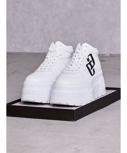 商品コメント: GYDAのスタイリングにマストで欠かせない厚底スニーカー。 程よく丸みのあるフォルムに、サイドのGGロゴアクセントを効かせ、 カジュアルながらもエッジとストリート感をプラスしたデザインに仕上げました。 ボリュームある厚底で脚長効果や、軽量ソールも履き心地抜群◎ 【サイズ】 S(22.5~23.0cm)M(23.5cm)L(24.5cm)/ストーム:5cm, ヒール:8.5cm コーデ: ラメソックスや、ルーズソックス合わせがおススメです。
