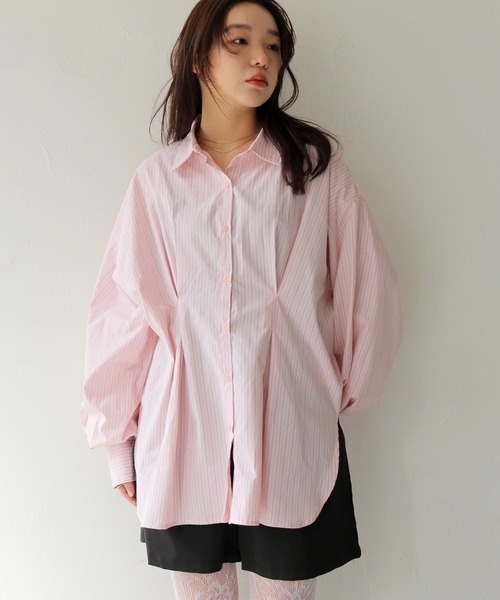 一枚でも羽織としても使えて、すっきり見えするストライプシャツ。 ウエストに施したタックデザインが、シンプルな中にさりげない変化を添えてくれるストライプシャツ。 程よくシェイプされたシルエットが、すっきりとした印象を演出し、一枚で着るだけでスタイリングがまとまるデザインに仕上げました。 ベーシックなストライプ柄で取り入れやすく、デイリーからきれいめなシーンまで幅広く活躍。ボタンを開けて羽織としても使いやすく、着こなしの幅が広がる一枚です。 ≪Styling≫ デニムやワイドパンツと合わせた、ラフなカジュアルスタイルにも取り入れやすい一枚。スラックスやナロースカートと合わせれば、すっきりとしたシルエットを活かした、ほどよくきれいめな着こなしに。 軽く羽織として取り入れるだけでも、コーディネートにさりげない変化を添えてくれます。 ≪Fabric&Detail≫ 伸縮性・・・なし 透け感・・・なし 厚み・・・★★☆☆☆ ▼《お気に入り登録》のおすすめ▼ 【商品のお気に入り登録】 気になるアイテムのハートマークを押してお気に入り登録すると 完売カラーの再入荷通知やラストの通知、セール通知を受け取ることができます。 【ブランドのお気に入り登録】 新商品や再入荷など、いち早くブランドのお得な情報を受け取ることができます。 ぜひご利用頂き、お買い物をよりお楽しみください。 ※撮影場所により、実際の色味と若干異なる場合がございます。 あらかじめご了承くださいませ。