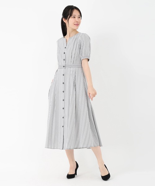 【元宝塚トップ娘役 舞空瞳さん着用】*キャンディストライプクラシカルを現代的に纏う、大人のストライプシャツワンピース。 リボンを織り込んだような愛らしい表情のストライプ素材を使用した、STRAWBERRY-FIELDSの主役級ワンピース。 顔まわりをシャープに見せるノーカラーのVネックと、計算されたフィット&フレアーのシルエットが、凛とした女性らしさを引き立てます。 ■ 拘り抜いたディテールと素材感 単なるプリントではなく、奥行きのある織柄が生み出す上質な質感が魅力。 フロントにはグラデーションカラーのボタンを配し、細部にまで遊び心と高級感を閉じ込めました。 ■ 品格漂うシルエットと着心地 袖デザイン: あえて少し長めに設定した袖丈が、クラシカルで落ち着いた雰囲気を醸し出します。 ウエスト設計: 前身頃はスッキリと、後ろウエストにはゴムを仕込むことで、美しいラインをキープしながら一日中ストレスフリーな着心地を叶えました。 ■ デイリーに嬉しい機能性 特別な日の一着としてはもちろん、ご自宅でのお手入れが可能なマシンウォッシャブル仕様。 お仕事から休日のお出かけまで、シーンを選ばずクリーンな印象を保てます。 パンプスでレディに、フラットシューズで少しカジュアルダウンさせても素敵に決まる、タイムレスな魅力に溢れた一着です。 《お気に入り登録》はお得がいっぱい! 「商品」のお気に入り登録で、再入荷、ラスト1点、セールなどお得な通知を受け取ることができます。 「ブランド」のお気に入り登録で、新商品や再入荷などいち早くブランドの情報を受け取ることができます。 是非、この機会にご登録くださいませ。
