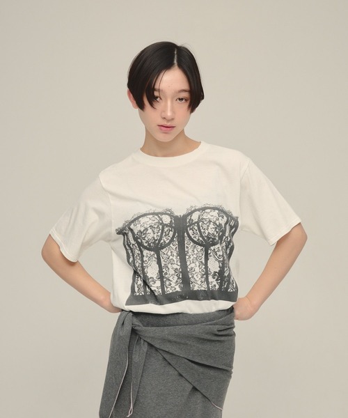 ーーー 繊細なランジェリー柄を大胆に配したプリントTシャツ ーーー -DETAIL- 身体のラインを拾いすぎないゆとりのあるボディに、レースコルセットを着けているように見せたトロンプルイユプリントをのせた遊び心のあるTシャツ。 カジュアルでありながら、女性らしいムードで着用できるアイテムです。 サラッとした肌触りのコットン生地を使用でしているので、汗ばむ季節にも快適に着用いただけます。 今季のトレンド感のあるスタイリングが1枚で叶います。 -STYLING- デニムパンツやワイドパンツ、ナロースカートと合わせた、抜け感のあるスタイリングがオススメです。 サラッと1枚着るだけでスタイリングが完成します。 【eL / エル】 JEANASISから大人の女性に向けたブランドが生まれました。 心の声にしたがって、真っ直ぐに進む変化を恐れず、 勇気を持って歩いていく明日もまた、 新しい自分に出会うために強く美しく、新しい毎日を生きる女性たちのためのファッション。 -INFORMATION- ◆商品のお気に入り登録 完売していても再入荷時に再入荷通知を受け取ることができますので、是非ご登録ください♪ ◆ブランドのお気に入り登録 新商品や再入荷などの情報を受け取ることができますので、是非ご登録ください♪ ※屋外の光や照明の当たり具合で、実際の商品の色味とカラー別画像の色味に違いが発生する場合がございます。 商品の色味はスタジオ撮影の詳細画像にてご確認ください。