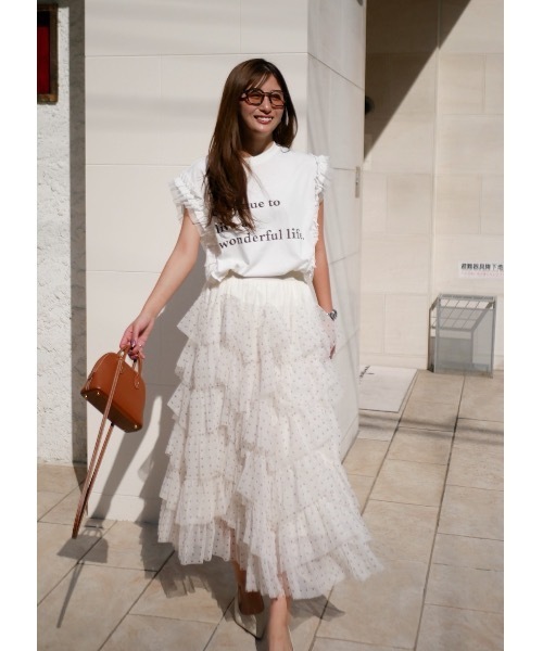 繊細なドット柄チュールをたっぷり重ねた、華やかさのあるティアードスカート。軽やかなチュール素材とフリルデザインが、動くたびにふんわりと揺れ女性らしい印象に。 ウエストはゴム仕様で、見た目以上に楽な履き心地。 シンプルなトップスを合わせるだけで、コーディネートが一気に華やぐ主役スカートです。 【素材】 表地:ポリエステル100% 裏地:ポリエステル100% 【コーディネート】 ・コンパクトなニットを合わせて、甘さを引き立てたフェミニンコーデ ・スウェットやロゴトップスと合わせて、甘辛ミックスのカジュアルスタイル ・デニムジャケットを羽織って、程よくカジュアルダウンした大人コーデ ・ブラウスを合わせて、きれいめなお出かけスタイル ・ショート丈トップスと合わせて、バランスの取れたトレンドコーデ ・ジャケットを合わせて、甘さを抑えた上品カジュアルスタイル 【生地・素材感】 厚み:薄め 透け感:ややあり 伸縮性:あり 光沢感:あり ポケット:なし 裏地:あり ウエストゴム:あり 洗濯方法:洗濯機可(ネット使用) ※詳しいお手入れ方法は商品タグをご参照ください。 ◯ SNS新着アイテムやお得なセール情報を配信中♪コーデのご参考にも...♡ 【公式 Instagram】@bebeod_official【公式 TikTok】@bebeod_official 【お買い物をより楽しんで頂くために🌿】 ◯ブランドのお気に入り登録♡ 新商品や再入荷など、いち早くブランドのお得な情報を受け取ることができます。 ◯ 商品のお気に入り登録♡ 完売カラーの再入荷通知や、完売間近の通知、セールの通知を受けることができます。 ※注意※ ◯商品画像は、撮影時の光や角度により、実物の色味と異なって見える場合がございます。 また、表示のサイズ感と実物は若干異なる場合もございますので、予めご了承ください。 ◯着用、お取り扱いの際は商品についておりますアテンションタグ、洗濯ネームを必ずご確認ください。 ◯商品によっては、繊維や染料のにおいが感じられる場合がございます。 <返品・キャンセルについて> ・着用・洗濯後の返品は致しかねます。 ・商品到着後、着用前に商品を確認して頂きますようお願い致します。 ※ご注文いただいた予約商品のお届け時期の確認は、注文履歴ページより行えます。 ※他のキャンペーンにより、期間中に価格が変動する場合があります。 ※セールは予告なく終了させていただく場合もあります。