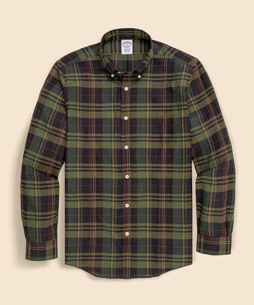 深みのあるカラー展開で夏から秋口まで着用可能なマドラスチェック柄のシャツ 第一釦ボタンを開けて開放的に着こなしたい、ボタンダウン(ポロカラー)仕様。落ち着きのあるダークトーンのマドラスチェック柄を採用し、春夏シーズンはもちろんのこと、残暑の厳しい季節にも秋の空気感を先取りしながら涼しく着用できる一枚に仕上げました。 ■Regular Fit:幅広い体型の方に合うようにデザインされた、標準的な程よいフィット感のモデル。 ■左胸にポケット付き。 ■ボタンダウン(ポロカラー)シャツは創業者の孫、ジョン・E・ブルックスが英国でポロ競技を観戦した際、選手がプレーの邪魔にならないよう襟先をボタンで留めていたことをヒントに考案し、1900年にアメリカで初めて販売しました。ファッション史上最も模倣されたと言われる、Brooks Brothersを象徴するアイテムのひとつです。 仕様 ・フィット:レギュラー ・襟型:ボタンダウン(襟の長さ8.6cm) ・バックプリーツ:センターボックスプリーツ ・袖丈:長袖 ・カフ:ラウンドバレルカフ(ダブルボタン) ・ポケット:左胸 ■information■ ・商品のお気に入り登録 お気に入りアイテムの再入荷・ラスト1点や、セールの通知など商品情報を受け取ることができます。 ・ブランドのお気に入り登録 新商品やセール、ショップのトピックスなどいち早くブランド情報をお届けします。