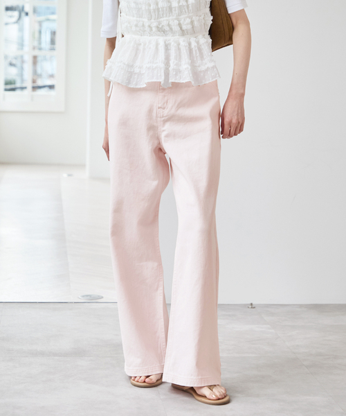 ◇トレンド感のあるペールトーンが魅力のカラーデニムで ご好評により追加になりました! ※こちらの商品は、≪26030212205020≫の追加商品です。 ・若干の仕様変更がある場合があります。 ・追加生産商品は、一部の店舗、通販で販売中の場合がございます。 予めご了承下さい。 理想の色味を表現するため、工場と細かな調整を重ねながら仕上げた、デザイナーこだわりの一着です。 淡くやわらかなカラーリングでスタイリングに自然と馴染み、パンツが主張しすぎず幅広いコーディネートに取り入れやすいのがポイント。 ウエストからヒップまではすっきりと、裾に向かってゆとりを持たせたシルエットで、抜け感のあるバランスに仕上げています。 通常のデニムよりもやや薄手の生地を採用しているため、暑い時期でも快適に着用できる軽やかな穿き心地も魅力です。 ********************** 透け感:なし 裏地:なし 伸縮性:なし 光沢感:なし 生地の厚さ:(通常のデニムと比べ)薄手 ********************** ※カラーによってアテンションが異なります。 ▼サックスブルー B(049) *染料の性質上、着用や洗濯により色落ちし、白っぽくなります。スレによる色落ち、色移りにご注意ください。 この製品はナチュラルな風合いをお楽しみいただけるよう、特殊な加工を施しています。そのため、一点一点に微妙な色、サイズ、風合いなどの違いがあります。 この製品は、加工により独特の素材感を持たせています。 ▼ピンク(063) この製品は縫製後、製品染めをしています。 そのため一点一点に微妙な色、サイズ、風合いなどの違いがあります。 色落ちや色移りの恐れがありますので、単独で洗ってください。 白や淡色製品と組み合わせて着用する際は、摩擦による色移りにご注意ください。 この製品はナチュラルな風合いをお楽しみいただけるよう、特殊な加工を施しています。そのため、一点一点に微妙な色、サイズ、風合いなどの違いがあります。 ※取り扱いについては、商品についている品質表示でご確認ください ※こちらの商品はUBY Spick & SpanN店舗での取り扱いになります。 直接店舗へお問い合わせの際は、UBY Spick & Span店舗までお願い致します。 ※照明の関係により、実際よりも色味が違って見える場合があります。 またパソコン・スマートフォンなどの環境により、若干製品と画像のカラーが異なる場合もございます。 ※商品の色味は、商品アップ画像をご参照ください。 本体:洗濯機洗い(弱)