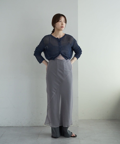 ■商品ポイントレギンスやタイツなどのレッグウェアーと重ねて、透け感を楽しむために作られたレイヤリング用のシアーワンピース。細番手の柔らかなオーガンジーシフォン生地が、動くたびにひらひらと揺れるのが魅力的な一着です。履いた時のシルエットの美しさの秘密は、切り替えから下生地を布目に対してバイアスに使用することで、緩やかに片側の裾が落ちて自然なフレア感が出ます。マーメイドシルエットを形づくるのと比べて、過剰にエレガンスになりすぎることなく、さりげなくゆらゆらと動きが出ます。これだけで脚が綺麗に見えて蹴回しも出るので、地味ながら変えられない推しポイントです。どんなスタイルにもマルチに使えるよう、肩紐を背中で結んで調整できる仕様しています。胸上着用だけでなく、胸下に落としてハイウエストのスカートのようにも使っていただけます。カラーは、気分のあがるピンクと肌馴染の良いライトグレー。お呼ばれの機会にも使えて、ON/OFFでスタイリングを楽しめる万能なアイテムです。■おすすめスタイリングアイテムシアーデニムシャツバックデザインペーパーメッシュカーディガン- - - - - - - - - - - - - - -透け感:あり裏地:なし伸縮性:なし光沢感:なし生地の厚さ:薄手- - - - - - - - - - - - - - -※洗濯ネットをご使用ください。※塩素系、酸素系漂白剤入の洗剤は使用しないでください。※浸け置き洗いは避け、洗濯後はすぐ脱水をして、陰干してください。※この製品は非常にデリケートな素材を使用している為、激しい運動や極度な力が加わると、縫い目が開いたり、目寄れする性質がございます。※アイロンの際は、当て布をし低温で軽く当ててください。※着用時の摩擦や洗濯により表面が毛羽立ち、毛玉が発生することがございます。<返品・キャンセルについて>・着用、洗濯後の返品は致しかねます。・商品到着後、着用前に商品を確認して頂きますようお願い致します。■「商品のお気に入り登録」でハートマークをクリックし、お好きなカラーを選んでお気に入りに登録すると入荷情報や残り1点の通知、完売カラーの再入荷、セール情報などを受け取ることができます。登録して頂いた商品だけが対象となる、あなただけのタイムセールが開催されることも!■「ブランドのお気に入り登録」で新商品や再入荷など、いち早くSHENERYのお得な情報を受け取ることができますので、ご登録をおすすめします!