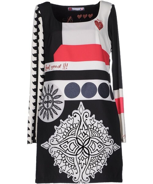 DESIGUAL Short dresses. plain weave, multicolor pattern, round collar, long sleeves, no appliqués, multipockets, stretch, dress. 64% Polyester, 28% Viscose, 8% Elastane