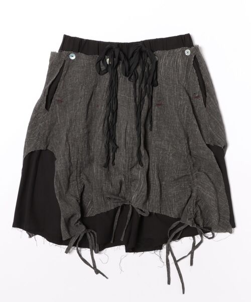 aenrmous 異素材のレイヤードと大胆なカッティングが際立つ「DOUBLE LAYER COMOSUS SHORT」。 ラフに重ねられたファブリックと、無造作に垂れるリボンディテールが独特の動きを生み、無骨さと繊細さを併せ持つ一本。フロントのドローコードや断ち切り仕様が、ブランドらしい退廃的なムードを演出します。 POINT・異素材を重ねたダブルレイヤーデザイン・ドローコード&リボンによる立体的なシルエット変化・断ち切り仕様のラフなエッジ・動きのあるドレープが生む存在感 STYLE TIPロング丈トップスやジャケットと合わせてモードに振るのはもちろん、タイトなトップスでシルエットにメリハリをつけるのもおすすめ。 足元はブーツやボリュームスニーカーでバランスを。 “普通のショーツに飽きた人”へ。 履くだけでスタイリングを一段引き上げる、主役級の一本です。 aenrmòus 反骨の実験精神を掲げ、「工芸的テックウェア」を自称する ænrmòus は、ファッションの新たな潮流を先導する存在です。 2021年にファッションシーンに降り立った知る人ぞ知るブランドは、現代カルチャー、伝統的なメンズウェア、自然、そして機能的なデザインを混ぜ合わせ、アクセントとなるタックや非対称なドレープ、レイヤード風パネルによって、歪んだシルエットを意図的に作り上げます。 3通りに着こなせるウールのジャケット、裾を調節できるルーズパンツ、マスク兼用のフードがついたレイヤードトップスに代表されるように、取り外しや組み合わせが可能なパーツを多用するのが特徴です。 脱構築的なフォルムによってだまし絵を具象化する ænrmòus は、切れ味のいいアバンギャルドなセンスを機能的なメンズウェアに持ち込むのです。