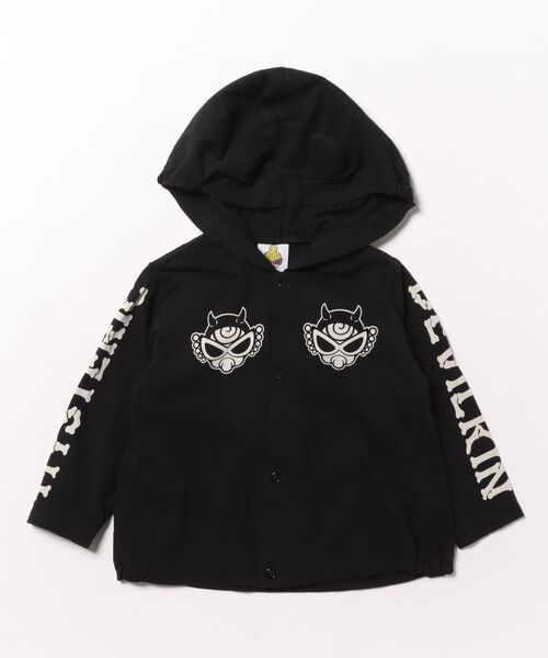 DEVILKINの定番羽織がなんとレベルUP☆フードのつのはもちろんですがなんとバックスタイルに立体的なリアルなDEVILKINの羽がつきました☆サイドの裾にゴムが入っているので着用すると少し丸みのあるシルエットが生まれてとってもキュートに仕上がっています。もちろん袖部分には外せないロゴデザインがプリントされています。