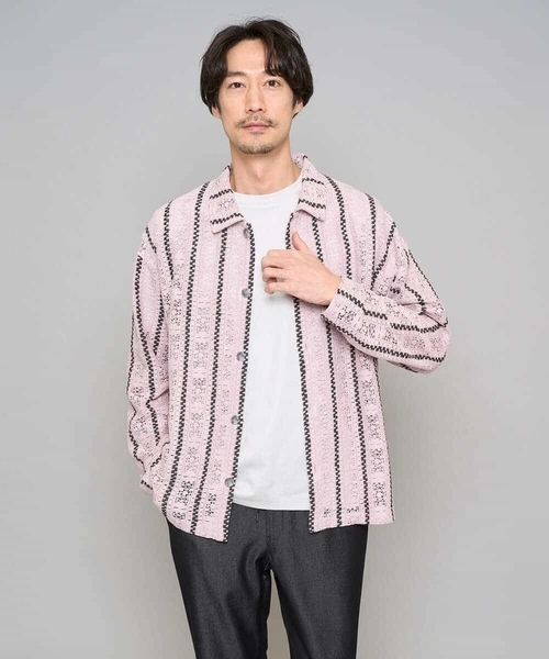 ◆1点でイマドキ!今季注目のスカシ織りを使用したトレンドシャツ。◆ 【デザイン】 インパクトのあるスカシストライプ柄をモチーフにしたトレンドシャツ。 シルエットはゆとりのあるワイドシルエットでこなれ感を演出できます。 存在感のあるアイテムで、取り入れるだけで今季らしい着こなしになるトレンドアイテムです。 ユニセックスでの着用も可能なため、女性にもオススメです。 【素材】 コットン混素材を使用した肌触りの良いスカシストライプ織り素材を使用。 ストライプ柄モチーフがインパクトのある1枚。 スカシ織りでしか表現できない透け感と立体的で暖かみのある、どこか懐かしい素材感がこだわりポイント。 クラフト感のある素材にも関わらず、ご自宅で気軽に洗濯機洗いができるためデイリーユースに気軽に着用できるのも嬉しいポイントです。 【スタイリング】 インナーにはシンプルなカットソーや無地シャツ合わせが柄感を引き立ててオススメです。 ボトムはきれい目スタイルであればスラックス合わせ、カジュアルスタイルであればゆとりのあるパンツとあわせるとバランスが良いコーディネートの完成です。 ---------------- 着用シーズン 春:◎ 夏:◎ 秋:〇 冬:× ---------------- 透け感:あり 裏地:なし 伸縮性:なし 光沢感:なし 生地の厚さ:薄手 ---------------- ≪お気に入り登録機能の使い方≫ ■商品のお気に入り登録(ハートマークをクリック) 再入荷通知や値下げ等、お得なご案内を受けることができます。 ---------------- ※商品画像は、光の当たり具合やパソコンなどの閲覧環境により実際の色味と異なって見える場合がございます。 商品の色味の目安は商品単体の画像をご参照ください。