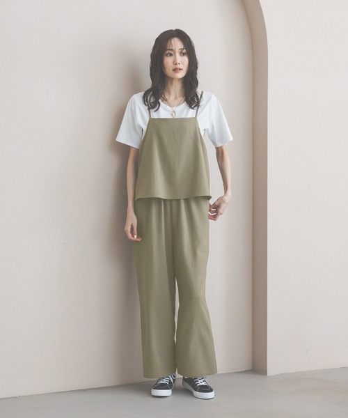 夏を快適に彩る高機能セットアップ ・素材/機能 イージーケア イージードライ マシンウォッシャブル 接触冷感 ・デザイン Tシャツとサロペットのセットです。 サロペットはキャミソールとパンツをセットアップで着ているようなデザインになっています。 ウエストにゴムが入っているので、スタイルアップとストレスフリーの両方が叶います。 ・お勧めスタイリング セットで着るだけでバランスが完成します。 単品それぞれでも使いやすいデザインです。 ----------------------------- 生地感・厚さ:普通 裏地:なし ----------------------------- ・カーキで計測しています。 (こちらは参考情報となります。カラーにより多少の誤差がございます。) ・こちらの商品はGLOBAL WORK独自の採寸方法となっています。本サイトのサイズガイドと採寸方法が異なる場合がありますのでご了承ください。 ・お買い物が便利になる機能がたくさん ・商品のお気に入り登録 完売アイテムの再入荷通知、ラスト1点、またクーポンやお値下げ通知をお知らせします。 ・ブランドのお気に入り登録 新商品や再入荷のお知らせ等、いち早くブランドのお得な情報を受け取ることができます。 ぜひご登録ください。