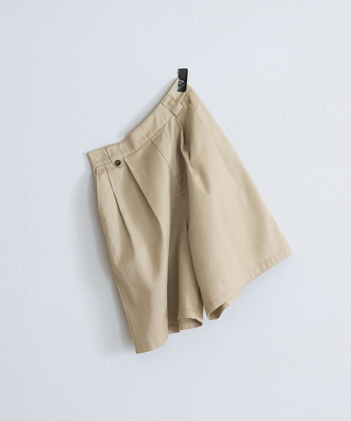 トレンドのチノを軽やかな着丈で ・デザイン 今季大注目のトレンドのチノパンを、ハーフパンツ丈で楽しめる新鮮なアイテム。 ハリ感のある素材なので太もも周りもカバーして、脚のラインを拾いません。 腰回りのタックですっきり見える立体的なシルエットも魅力。 シンプルに合わせるだけで、今年らしいこなれ感のあるスタイリングが完成します。 ・おすすめスタイリング ハーフパンツ初心者さんには、脚の露出をグッと抑えられるロングブーツ合わせがおすすめです。 ふくらはぎをカバーしつつ、一気に今年らしいこなれ感が出ます。 トップスにはゆったりめのシャツやロンTを合わせると、全体のバランスが取れて子供っぽく見えません。 大人カジュアルの鉄板です。 ----------------------------- 透け感:やや透ける 伸縮性:なし 生地感・厚さ:普通 裏地:なし ----------------------------- ・ライトベージュで計測しています。 (こちらは参考情報となります。カラーにより多少の誤差がございます。) ・こちらの商品はGLOBAL WORK独自の採寸方法となっています。本サイトのサイズガイドと採寸方法が異なる場合がありますのでご了承ください。 ・お買い物が便利になる機能がたくさん ・商品のお気に入り登録 完売アイテムの再入荷通知、ラスト1点、またクーポンやお値下げ通知をお知らせします。 ・ブランドのお気に入り登録 新商品や再入荷のお知らせ等、いち早くブランドのお得な情報を受け取ることができます。 ぜひご登録ください。