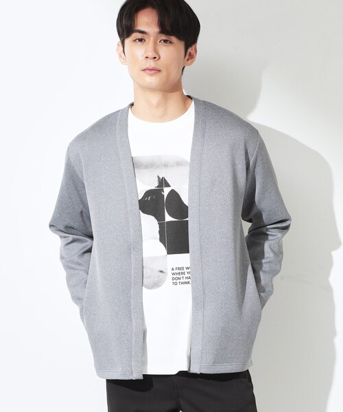 ■ポイント / 詳細 上品なスエード調素材を使用した、着流しデザインのカーディガン。 フロントボタンを省いたミニマルな設計で、さらりと羽織るだけで大人の余裕を演出できる一枚です。 杢調カラーが奥行きのある表情を生み、シンプルながらもさりげない存在感をプラス。 カットソー素材ならではの伸縮性で動きやすく、きれいめにもカジュアルにも対応できるアイテムです。 軽さと落ち感のバランスが良く、縦ラインを強調するシルエットでスタイルアップ効果も期待できます。 ■素材 / 機能特性 スエード調に仕上げたカットソー素材を使用。 微起毛の表面感が滑らかな肌触りを生み、素肌に触れても心地よい着用感です。 柔らかくしなやかな素材のため身体に自然に馴染み、長時間の着用でも負担を感じにくいのが特徴。 適度な伸縮性があり動きやすく、軽量設計で季節の変わり目にも最適。 見た目は上品ながら、扱いやすくデイリー使いしやすい素材感です。 ■おすすめコーディネート ・無地クルーネックTシャツと合わせたミニマルな大人カジュアルスタイルに。 ・テーパードパンツやスラックスと合わせれば、きれいめなスマートスタイルにもおすすめ。 ・デニム+レザースニーカーでまとめれば、抜け感のある都会的コーデに。 ・同系色のインナーとレイヤードすれば、杢調カラーの奥行きがより際立ちます。 オンオフ問わず使える、ワードローブに一枚は持っておきたい着流しカーディガンです。 【仕様】 ・ポケット数:横×2 ※照明の関係により、実際よりも色味が違って見える場合があります。また、パソコン・スマートフォンなどの環境により、若干製品と画像のカラーが異なる場合もございます。 モデル情報:身長183cm B90 W71 H87 着用サイズ:03(L) 店舗へのお問い合わせ商品番号:616-35221 ●製品寸法: 02(M):着丈69cm B100cm 袖丈59cm 肩幅43cm 03(L):着丈71cm B106cm 袖丈60cm 肩幅45cm 04(LL):着丈73cm B112cm 袖丈61cm 肩幅47cm 備考: