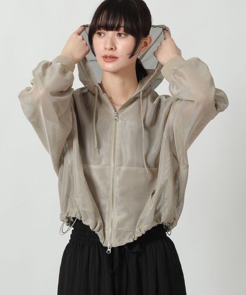 ーーー 選べる2つの丈感で、低身長さん・高身長さんどちらにもバランスのよいメッシュ素材のパーカー。 ゆとりのある身頃なのでレイヤードもしやすく、リラックス感のあるシルエットもポイント。 透け感が涼しげでさっと羽織れ、スタイリングに抜け感をプラスできるアイテムです。 胸囲は変わらずサイズにより着丈と肩幅、袖丈を変えた仕様に。 Mサイズはウエストが隠れる旬なクロプト丈、Lサイズは腰回りがカバーできるベーシックなロング丈、お好みの丈をお選びいただけます。 【素材】 透け感のあるメッシュ素材。 目の詰まった生地感なのでさりげないヘルシーさが楽しめます。 ーーー 【スタイリング】 カジュアルでもきれい目でも合わせるボトムを選ばずスタイリングできます。 インナーで雰囲気も変わるのでレイヤードもお楽しみいただけます。