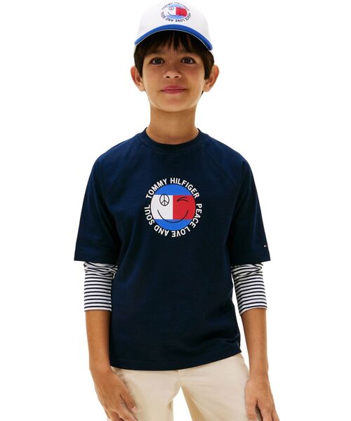 BOYS ファンフラッググラフィックTシャツ ファンフラッグプリントが目を引くグラフィックTシャツ。左袖口にフラッグロゴ、バックネックにグローバルストライプも配しています。肩を動かしやすいラグランスリーブが、アクティブなシーンにも対応する快適な着心地を実現。コットン100%素材で、メインからレイヤードまで幅広く活躍します。 【サイズ】 (cm) 90:着丈39:身幅34:ゆき30 100:着丈41:身幅36:ゆき32 110:着丈45:身幅37:ゆき34 120:着丈48:身幅39:ゆき38 130:着丈49:身幅40:ゆき40 140:着丈52:身幅42:ゆき41 150:着丈56:身幅45:ゆき44 160:着丈61:身幅49:ゆき47 【TOMMY HILFIGER】 永遠のアメリカンクラシックをベースにモダンなひねりを加えたデザインが人気のトミーヒルフィガー。都会的で洗練されたメンズ・ウィメンズに加え、チルドレン、ゴルフライン、そしてよりカジュアルなデニムラインと豊富なカテゴリーが揃うグローバルブランド。 【商品詳細】 ・【TOMMY HILFIGER】<国内正規品>伝統的なクラシック・アメリカン・クールなスタイルを、遊び心に溢れたツイストをプラスすることによって進化させたプレミアムライフスタイルブランド ・【サイズ】 ・ファンフラッグプリントが目を引くグラフィックTシャツ。左袖口にフラッグロゴ、バックネックにグローバルストライプも配しています。肩を動かしやすいラグランスリーブが、アクティブなシーンにも対応する快適な着心地を実現。コットン100%素材で、メインからレイヤードまで幅広く活躍します。