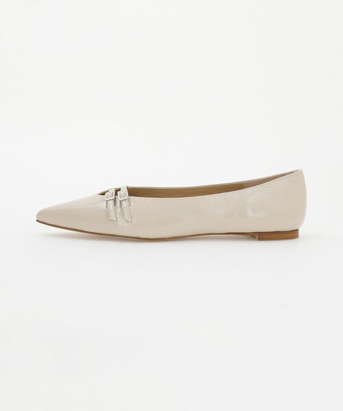 ダブルベルトが上品なポインテッドフラット ■デザイン 浅めのVカットに2本の華奢なベルトを付けたフラットシューズ。 スクエア型の小さなバックルがアクセントをプラスし、スタイリッシュな印象。 すっきりとしたポインテッドトゥや浅めの履き口で、きれいめな通勤スタイルやセレモニースタイルとも好相性です。 ■素材 シワ感のあるエナメル加工の素材です。 【注意事項】 ※ソールに保護シートが貼られている場合は剥がしてご使用下さい。 ※かかと部分にある1ミリ程度の小さな穴は、生産工程上発生するものであり、不良品ではございません。 ※商品画像は、光の当たり具合やパソコンなどの閲覧環境により、実際の色味と異なって見える場合がございます。あらかじめご了承ください。 ※シューズの重量は、シューズ本体のみ両足の重量となります。箱や付属品は計測に含まれません。 ※商品に不良が無い場合、包装紙および箱の破損がございましても発送いたします。あらかじめご了承ください。 店舗へお問い合わせの際は、全国のODETTE E ODILE各店舗まで下記の品名/品番をお申し付けください。 品名:O ダブルベルトPTD FLT10↑ 品番:45162000051