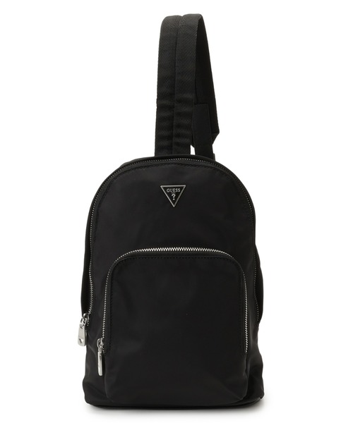 洗練されたミニマルなデザインが魅力のボディバッグ。 滑らかな質感と、きらめくシルバーカラーの金具が高級感のある仕上がりを演出します。 薄型ながらも、GUESSロゴをあしらった裏地や内ポケットを備え、荷物の整理もしやすいのが嬉しいポイント。 背面はメッシュ素材で通気性も良く、デイリーユースはもちろん、トラベルやアクティブなシーンでも快適に、そしてスマートにお持ちいただけます。 カジュアル過ぎず、綺麗めスタイルにもすっと馴染む上品な逸品です。