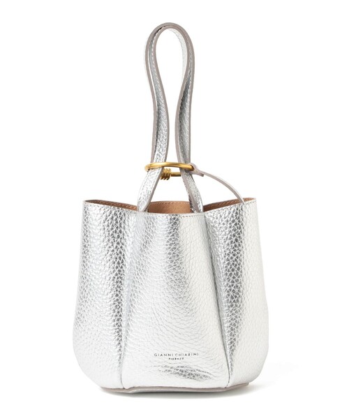 ■デザイン ハンドルに付属のリングチャームを通すことでシルエットを変化させられるバッグ『LILY(リリー)』。メタリックな艶が程良く華やぎを添え、装いにさりげない存在感をプラスします。 ■ディテール 付属のリングチャームは、デザインのアクセントとしてだけでなく、バッグのシルエットを調整できる機能的なポイント。リングを通して口元を絞れば立体感のあるフォルムに、外せばシンプルなトート型に変化できます。 ■サイズ コンパクトながらもマチがしっかりと確保されており、必要な荷物が収まりやすい設計。 ■ケア方法 濡れた場合は、乾いた柔らかい布で手早く水気をとり、風通しの良い場所で陰干しして下さい。また、保管の際は温度・湿度が低く光の当たらない通気性の良いところにお願いします。 ●同モデルのカラー違いもございます 品番:64-62-0258-859 GIANNI CHIARINI / ジャンニ キアリーニ 革鞄職人の父を持つジャンニ・キアリーニ氏により1999年に創設されたバッグブランド「GIANNI CHIARINI」。オーセンティックでモダン、クラシックにひねりを加え、ファッション性とともに機能性を実現したコレクションが魅力。昔ながらの技法をほどこした革に新しいアイディアとクリーンなデザインをのせて世界中の女性たちを魅了し続けています。