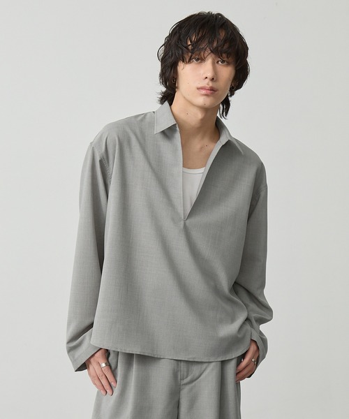 抜け感と機能性を両立。都会的に着こなすスキッパーシャツ。 ■design / silhouette 胸元の大胆なV字カットが特徴のスキッパーシャツ。 リラックス感のあるゆったりとしたシルエットと相まって、着るだけで抜け感のあるスタイリングが完成します。 裾は前後差のあるラウンド仕様にすることで、軽やかな動きをプラス。 シンプルながらも存在感のあるデザインで、1枚で主役になる一着に仕上げました。 ■fabric / material 強撚糸を使用し、さらっと軽やかでシャリ感のある風合いに仕上げたリネン(麻)ライク素材。 ドライタッチでさらっとした肌触りと、通気性の良さが特徴。 ポリエステル100%でシワになりにくく、イージーケア性にも優れています。 さらに吸水速乾・UVカット機能を備え、暑い季節にも頼れる高機能素材です。 ※強撚糸(きょうねんし)…通常の糸よりも強く撚り(回転)をかけた糸。 撚りが強いため繊維が丈夫で、表面の毛羽立ちも少なくシャリ感のある肌ざわりなのが特徴。 ■styling タンクトップの上からラフに被るだけで、抜け感のあるトレンドライクなレイヤードスタイルが完成。 デニムやワイドパンツと合わせたカジュアルな着こなしから、スラックスと合わせたクリーンなスタイルまで幅広く対応します。 シンプルなデザインだからこそ、美しいシルエットが際立ち、カジュアルにもドレッシーにも自然にフィット。 一枚着としてはもちろん、軽い羽織としても活躍する、着回し力の高い一着です。 【セットアップ可能品番】 品名:【CALLNE】強撚リネンライクワイドストレートスラックス(吸水速乾、UVカット、イージーケア) ブランド品番:LNEpt1744 商品コード:102507989 ■洗濯について ・洗濯の際は洗濯ネットを使用してください。 ・濃色と淡色は分けて洗ってください。 ・つけ置き洗いはお避けください。 ・生成り・淡色製品には蛍光増白剤の入っていない洗剤をご使用ください。 ・洗濯後は放置せず、すぐに形を整えて干してください。 ■乾燥・仕上げについて ・タンブル乾燥はお避けください。 ・形を整えて干してください。 ・アイロンをかける際はあて布を使用してください。 ■色移りについて ・摩擦(特に湿った状態)や汗、雨などで濡れた場合、他の衣類や下着、バッグ等に色移りすることがありますのでご注意ください。 ■生地特性について ・摩擦やもみ作用により毛玉が発生する場合があります。 発生した場合はハサミや毛玉取り器で取り除いてください。 ■その他 ・直射日光や照明に長時間さらされると、退色・変色の原因となりますのでご注意ください。 ■動画着用モデル model:177cm size:L ■CALLNE/カルネ 静けさを纏う洗練されたスタイルを展開。 ■商品のお気に入り登録 完売カラーの再入荷通知や、ラスト1点、セールの通知をお知らせいたします。 ■ブランドお気に入り登録 新商品や再入荷など、いち早くブランドの情報を受け取ることができます。