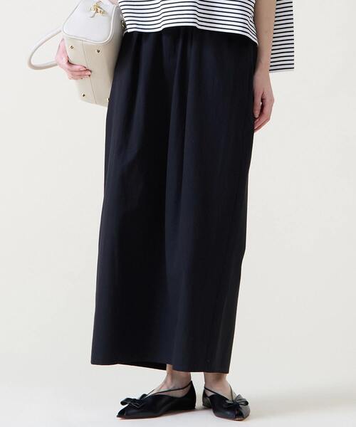【デザインコメント】 ウエストギャザータックが入った コクーンシルエットのタイトスカートです。 軽さと履き心地の良さもあり、 トレンド感と抜け感が出せるスカートです。 【素材コメント】 インドのオーガニック原料を使用した タイプライター素材です。 国内で洗い加工を施しているので適度な ハリ、落ち感のある素材です。 ■透け感 なし ■伸縮性 なし ■光沢感 なし ■裏地 なし ■生地の厚さ やや厚い