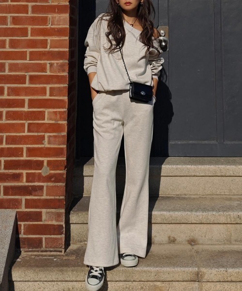 【point】 肩の抜け感がポイントのワンショルスウェットとパンツのセットアップ ワンショルデザインでさりげない肌見せが叶います 裾の両脇にはドロストコードをあしらい、キュッと絞れば丸みのあるシルエットに。 パンツはややフレアなシルエットが縦ラインを強調して、すっきりとした印象を与えてくれます。 ウエストはゴム仕様でリラックスな履き心地ながら、スタイルアップ効果も期待できる1本。 上下ともに女性らしさもあり、単品でも着回ししやすいセットアップです 透け感:なし 厚さ:厚手 伸縮性:あり 裏地:なし 【ブランド紹介】 esutoreja / エストレジャ 「Cool」×「Sexy」 都会的なカッコいい大人の女性像を表現し、 海外モデルのようなクール&セクシーを追求したファッションブランド。 スタイルアップアイテムはもちろん、 ブランド本来の着やすさや動きやすさも取り入れたアイテムも提案。 ≪お買い物をよりお楽しみいただくために♪≫ ・商品のお気に入り登録完売カラーの再入荷通知や、 完売間近の通知、セールの通知を受けることができます。 ・ブランドのお気に入り登録新商品や再入荷など、 いち早くブランドのお得な情報を受け取ることができます。 カラーバリエーション/レイヤード/スタイルアップ/クール&セクシー/体系カバー/リラクシー/トレンド/旬/海外風/海外ファッション/ワンピース