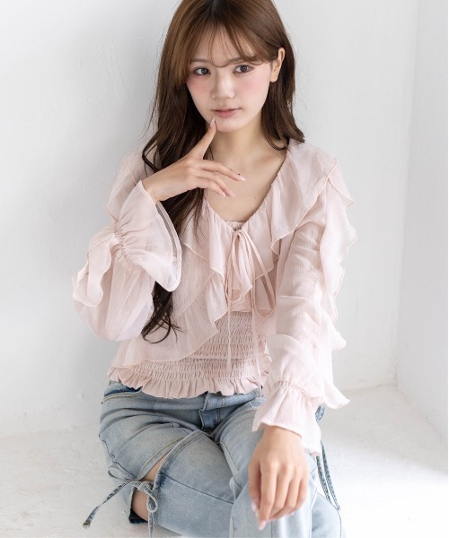 【2026SS】 clear 可愛いが溢れる、儚げトップス!ラメシアーフリルアンサンブル 【デザイン】 繊細なラメを織り込んだシアー素材に、たっぷりのフリルをあしらったフェミニンアンサンブル。 フリルが縦ラインを強調し、自然にスタイルアップを叶えてくれます。 ほんのり透ける袖とラメのきらめきが、動くたびに女性らしい華やかさを演出◎ 【コーディネート】 プリーツミニスカートと合わせて王道なガーリーコーデに。 マーメイドスカートにヒールパンプスを合わせることで大人フェミニンにもなります♪ ストレートデニムやフレアデニムと合わせてカジュアルミックスにしても可愛いです◎ ********************** 透け感:カーディガンのみあり 裏地:キャミソールのみあり 伸縮性:キャミソールのみあり ********************** 本体:手洗い可能 【※お取り扱い上のご注意】 1:モニター環境等により実際の商品と多少色味が異なって表示される場合がございます。予めご了承下さい。 2:屋外で撮影された商品は、天候により多少実際のカラーと異なる場合があります。商品のカラーはトルソー(マネキン)の商品画像をご参照ください。 3:濃い色の商品は、お洗濯や摩擦等による移染にご注意ください。 4:末永くご愛用頂く為に、アテンションタグ・洗濯ネームを必ずご確認の上、着用又はお取り扱い下さい。 5:生産時期により、色、サイズ、デザイン、素材の質感が多少が異なる場合がございます。あらかじめ御了承下さいませ。