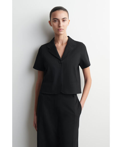今シーズンのウィメンズウェアコレクションでは、クラシックなテーラリングのルールを柔らかく表現しています。こちらのツイルジャージーブレザーは、ややクロップドしたシルエットで、ノッチドラペル、半袖、シングルボタン留めが特徴です。同素材のキュロットと合わせて、モダンなスーツスタイルをお楽しみいただけます。 ・レギュラーフィット ・ボタン留め ・洗濯機洗い可 サイズSの後ろ丈は50cm / モデルはサイズSを着用