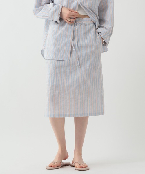 トレンド感のあるミディ丈のストライプスカート ■DESIGN ・スタイリングに新鮮味をプラスするミディスカート ・両サイドスリット入りで脚さばきも◎ ・ウエストゴム仕様でリラックス感のある履き心地 ・別ペチコート付きなので一枚での着用はもちろん、ペチコートを外してお手持ちのボトムにレイヤードすることも可能 ■FABRIC ・シボ感のあるマルチストライプ素材を使用 ・春夏らしいキャッチーなカラー展開も魅力 ・程よい透け感があり軽快な印象に ■STYLING ・女性らしい印象のアイテムなので、オーバーサイズのロゴTなどのカジュアルアイテムと合わせやすい ・同素材のシャツと合わせてセットアップ風に着こなすのもおすすめ ▼セットアップ対応アイテム マルチストライプシャツ(ブランド品番:668725/ZOZO品番:105505608) ※サンプルにて撮影をしておりますので、実際の商品とは仕様や加工・サイズ等が若干異なる場合がございます。 ※屋外の光や照明の当たり具合で、実物と色味が異なって見える場合がございます。詳細画像の色味をご確認ください。 なお、商品の色や質感を出来るだけ忠実に再現するよう心掛けておりますが、パソコンなどの環境により、実物と若干異なる場合がございます。 ※写真を許可無くコピー・転用することは固くお断りします。