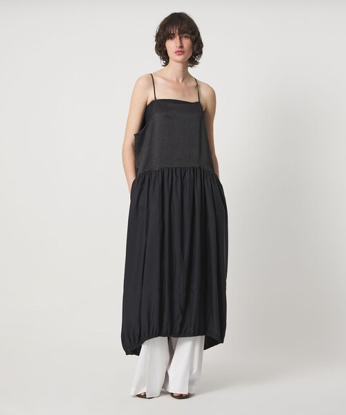 表情の異なる生地を使用したコンビネーション キャミワンピース。 お手持ちのインナーを着用することを前提にした、敢えてイージーなゆるさのある裾のフォルムはややバルーンテイストで、大人モードなスタイルを演出します。 付属のベルトはなしでも、ウエストマークしても、そのベルトをしながら上身頃部分の細い肩紐を外してベルトから折り返し腰回りに垂らすスカートライクな着こなしもお楽しみいただけます。 レイヤードアレンジをお楽しみいただける一着です。 ============================ 裏地:なし 透け感:なし 伸縮:なし 光沢感:あり ============================ 【注意事項】 ※商品に「取り扱い上の注意書き」、「洗濯表示」がございます場合は、使用前に必ずご確認ください。 ※商品画像は、光の当たり具合やパソコンなどの閲覧環境により、実際の色味と異なって見える場合がございます。あらかじめご了承ください。 ※商品の色味の目安は、商品単体の画像をご参照ください。 店舗へお問い合わせの際は、全国の6(ROKU)各店舗まで下記の品名/品番をお申し付けください。 品名:6 ACE/CU/E CAMI OP 品番:86262000008