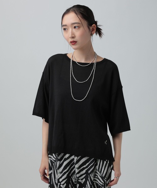 夏にぴったりな機能を兼ね備えたデザインニット 【デザイン】 アダストリア開発素材の「ICEWE KNIT」を使用したニットです。接触冷感・速乾・マシンウォッシャブル・紫外線防止の機能付きで暑い夏でも着用できます!身幅が広めでゆったりデザインですが、丈が長すぎないので綺麗めな印象に。左裾の刺繍もポイントになっています◎ 【スタイリング】 ・スリム~ワイドパンツまで幅広いスタイリングに合わせてやすいです。 ・柄パンツなどとも相性抜群です! --------------------------------------------------- 【気になる商品はお気に入り登録がおすすめ!】 ・在庫残りわずか ・再入荷 ・セールの情報 などの通知を受け取ることができます。 気になる商品は♡をクリックして、 「お気に入り登録」しましょう! 【ショップ・ブランドのお気に入り登録も!】 新商品や再入荷、セール、クーポンの配布など、 いち早くお得な情報を受け取ることができます。 ---------------------------------------------------