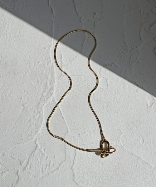 しなやかなスネークチェーンがデコルテに上品な輝きを添えるネックレスデザインのアクセントになるマンテル金具は、フロントに持ってきてもお洒落に決まります。汗や水に強く、錆びにくいステンレス素材を使用しているため、デイリーユースにぴったり。シンプルなTシャツやニットにプラスするだけで、ぐっとこなれた印象に。きれいめなブラウスやワンピースにもマッチし、シーンを選ばず活躍します。お手持ちのネックレスとの重ね付けもおすすめです。華やかなゴールドと、クールな印象のシルバーの2色をご用意しました。毎日のコーディネートに欠かせなくなる、洗練されたアイテムです。