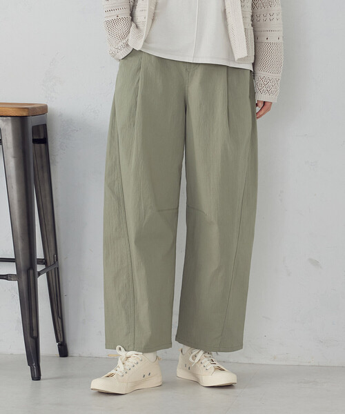 ◆ONIGIRI(おにぎり)のコットンヴィンテージストレッチ カービーパンツ◆ 《デザイン》 内股下線の膝部分にダーツを取って脇に膨らみを持たせました。 脇線を裾に向けて前パンツに移動させ、スッキリ切替え線をアクセントにしました。 後ろはデニムパンツ風のヨーク切替えとパッチポケットでカジュアルな印象です。 ウエストはゴム仕様になっており、フロントはファスナー無しのフェイクデザインですが、 釦、ベルト通し付きです。キレイめにもカジュアルにも合い、 真冬以外のロングシーズン着用できる便利なパンツです。 《素材》 綿にポリウレタンを入れる事でできるナチュラルなシワが特徴的な、 ヴィンテージ風の平織り素材です。柔らかな風合いとサラリとした肌触りで ストレッチ性もあるので着心地抜群な素材感です。生地に洗い加工をかけてありますので ナチュラルな風合いをお楽しみ下さい。 《お取り扱い》 お洗濯の際に多少縮むことがあるかもしれませんので、形を整えてから陰干しで自然乾燥お願い致します。 【注意事項】 画像の商品はサンプル品を使用し撮影している場合がございます。 できるかぎり、実際の商品の色味に近づけるよう徹底しておりますが、 光の当たり具合や、お使いのモニター、お部屋の照明などの 閲覧環境により、若干異なって見えることがございます。 また仕様、加工、サイズ、素材等も 若干異なることもございますのでご了承くださいませ。 …………………… 透け感 : なし 厚さ:普通 伸縮性:あり 光沢感:なし 裏地:なし ポケット:あり 洗濯方法:洗濯洗い可 ………………… ※画像の商品はサンプルとなりますので実際の商品と仕様、加工、サイズが若干異なる場合がございます。 ※こちらの商品はFIVE FOXes独自の採寸方法となっています。 本サイトのサイズガイドと採寸方法が異なる場合がありますのでご了承ください。