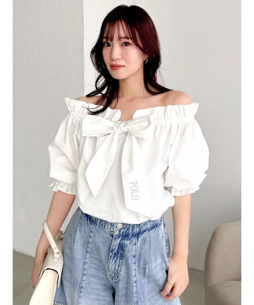 POLO BCS × dazzlin コラボ 第5弾! >>コラボ特設ページはコチラ 4.3 fri 12:00 予約START! 【商品】 ブリティッシュテイストの上品さとフェミニンなムードを掛け合わせた、トラッドで洗練感のあるブラウス。 丸みのあるコロンとしたシルエットが印象的で、フロントのビッグリボンが愛らしいポイントに。 クラシカルな雰囲気の中に、程よい遊び心を添えています。 襟まわりにはゴムを入れ、オンショルダー・オフショルダーの2WAYで着用可能。 スタイリングに合わせて印象を変えられるのも魅力です。 【スタイリング】 ロング丈のフレアボトムと合わせれば、動きのあるやわらかな雰囲気のフェミニンスタイルに。 デニムと組み合わせてラフにまとめても、フレンチライクに上品なスタイリングがお楽しみいただけます。 ---------------------------------------------------- 気になるアイテムはお気に入り登録がおすすめ 入荷情報やラスト1点、お得なプライスダウンの情報をいち早くお届け! ぜひご登録ください◎ ---------------------------------------------------- ※実際にお届けする商品と仕様やサイズが異なる場合がございます。 また生産の都合上、お届け時期が前後する場合がございます。