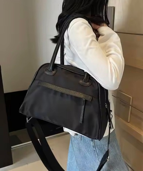 【 ammy. / エイミードット 】 ナイロン コンビ 2WAY ボストン バッグ コーデにさりげないアクセントをプラスする、 シンプルなデザインのボストンバッグ。 軽やかなナイロン素材が カジュアルすぎず程よく上品な印象に仕上げました。 シンプルながらもこなれ感のあるデザインで、 デイリーコーデに自然と馴染みます。 荷物がたくさん入り しっかり収納できる実用的なサイズ感もポイント! マチ付きで荷物の出し入れもしやすく、 使い勝手の良さも魅力です。 ハンドバッグとしてはもちろん、 付属のストラップを使えばショルダーバッグとしても使える2WAY仕様。 シーンやコーデに合わせて持ち方を変えられます。 デイリー使いはもちろん、お出かけやジム、旅行用としても活躍する万能アイテムです。 ※撮影・モニター環境等により実際の商品の色味と異なって見える場合がございます。 【インフォメーション】 ◆商品のお気に入り登録 完売カラーの再入荷通知を受け取ることができます。 ぜひご登録ください♪ ◆ブランドのお気に入り登録 新商品や再入荷などのお得情報を受け取ることができます。 ぜひご登録お願いします