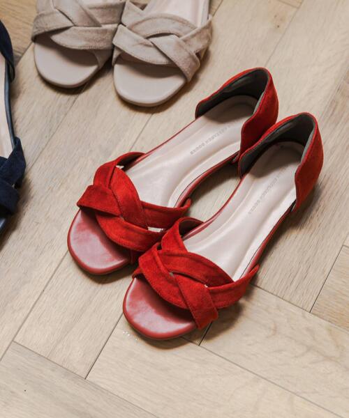 毎年人気のセパレートフラットシューズに、新色が加わって登場。 メッシュデザインが、パンツスタイルでもさりげなく覗き、コーディネートのアクセントに。 今季は、お洋服に馴染みやすいベージュ・ネイビーに加え、差し色として映えるレッドを含めた3色をご用意しました。 【2026 Spring/Summer】【26SS】 ※摩擦、水濡れ等により色落ちする可能性がございます。 ※濃色の製品は着用中に他の製品に色移りする恐れがございます。 ※その他お取り扱いに関しましては、商品に付属のアテンションタグをご覧ください。 ※サイズ詳細は、当社が独自で計測したサイズです。 ※靴箱破損につきましては、商品に不良が無い場合に限り出荷させていただいております。予めご了承ください。 重量(片足) : 約190g ※商品画像は、光の当たり具合やパソコンなどの閲覧環境により、実際の色味と異なって見える場合がございます。予めご了承ください。 ※商品の色味の目安は、商品単体の画像をご参照ください。 ----------------------------- 《スタッフレビュー》 試着サイズ : 36 / 37 36だと足長はちょうどいいサイズ感でしたが、甲幅がやや広めの私には幅はキツく感じました。37で甲幅はぴったりになりましたが、足長がやや大きく感じました。個人的には全体的に少し小さめのサイズ感のように感じました。 [スタッフデータ] 普段の着用サイズ : 23.0~23.5cm 足長 : 22cm 足囲 : 22cm 足幅 : やや広め ※履き心地には個人差がございますので、あくまでも目安としてご覧ください。 ----------------------------- ▼お気に入り登録のおすすめ▼ お気に入り登録商品は、マイページにて現在の価格情報や在庫状況の確認が可能です。 お買い物リストの管理に是非ご利用下さい。 373638