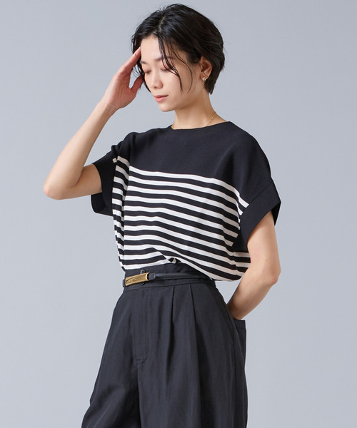 Liesseの定番!エッグ型のシンプルニットトップス。 【デザイン】 定番として持っておきたいシンプルなニットトップスを、 今季のバランスにアップデートしました。 デイリーにはもちろん、お仕事シーンにも使いやすく、 Tシャツよりきれい見えする上品さが魅力。 ジャケットのインナーとしても重宝します。 さらに、透け感がない素材なので一枚で着やすく、 安心して着用できるのも嬉しいポイント。 【素材】 適度なストレッチ性と、 給水加工・UVカット・ドライタッチといった機能性を兼ね備えた、 イージーケアに優れた糸を使用しています。 ガーター編みにすることで、表情のある編地と快適な着心地を両立。 自宅での手洗いが可能なのも嬉しいポイントです。 【お手入れ】 手洗い可能。 【コーディネートポイント】 程よいゆとりがあり、一枚着に、ジャケットインナーに、活躍の幅の広いトップス。 ボトムを選ばずに、スカートでもパンツでも、 ウエストインでもアウトでもバランスよく装えます。 ********************** 透け感:なし 伸縮性:あり 光沢感:なし 裏地:なし 生地の厚さ:普通 **********************