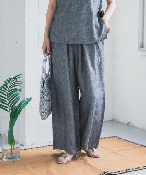 上質リネンで魅せる、ギャザーワイドパンツ リネン100%のヘリンボーン織り生地で仕立てた、定番リネンをワンランク上に引き上げるシリーズの一本。 表情豊かな織り柄がナチュラルな風合いを際立たせ、着こなしに奥行きをプラスします。 たっぷりと分量を取ったギャザーワイドシルエットが、動くたびに軽やかに揺れ、こなれた印象を演出。 リラックス感がありながらも上品さを兼ね備え、日常のスタイリングを格上げしてくれます。 同シリーズのベストやジャケットとのセットアップも可能で、統一感のある着こなしが完成。 シンプルながら存在感のある、長く愛用したい一着です。 【2026 Spring/Summer】【26SS】 ※この商品は、麻を使用しております。素材の特性上、シワになりやすいのでご注意ください。 ※着用時の摩擦やクリーニングの繰り返しにより、白化、毛羽立ちや部分的な脱色がおこる場合があります。 ※その他お取り扱いに関しましては、商品に付属のアテンションタグをご覧ください。 ※商品画像は、光の当たり具合やパソコンなどの閲覧環境により、実際の色味と異なって見える場合がございます。予めご了承ください。 ※商品の色味の目安は、商品単体の画像をご参照ください。 ▼お気に入り登録のおすすめ▼ お気に入り登録された商品は、マイページにて現在の価格情報や在庫状況の確認が可能です。 お買い物リストの管理にぜひご利用ください。 素材感 透け感 : なし 伸縮性 : なし 裏地 : なし 光沢 : なし ポケット : あり MS